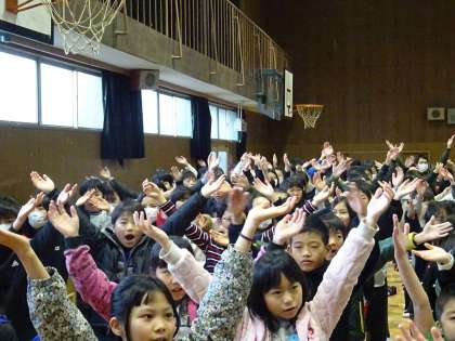 今週の英語集会では、集会委員会の子どもたちがステージに立ち、ダンスミュージックにのせて、みんなで楽しくダンスを踊りました。