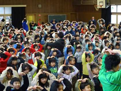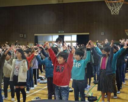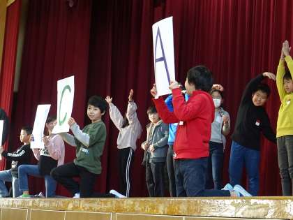 曲のリズムに合わせて、先生が英語で動きを言います。