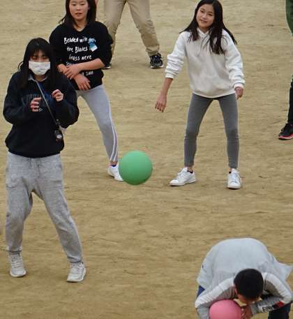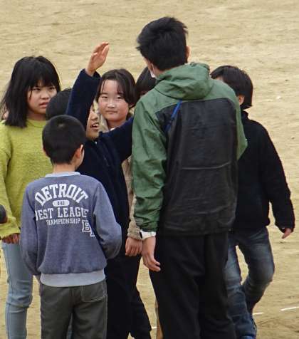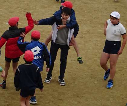 先生も子どもたちと一緒に運動場で遊んでいました。