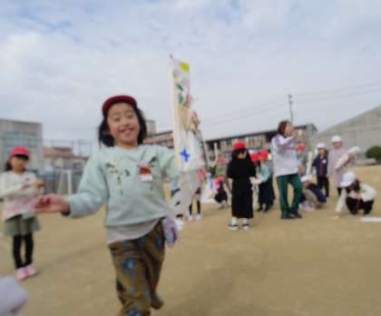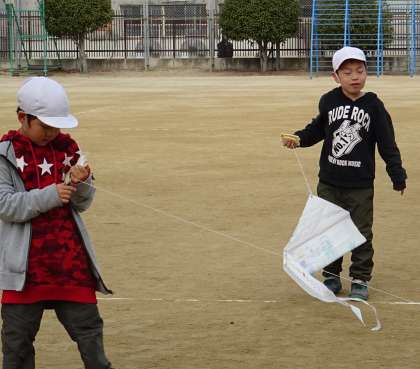 今日はあまり風が吹いていなかったので、みんな自分で走ってたこを飛ばしていました。