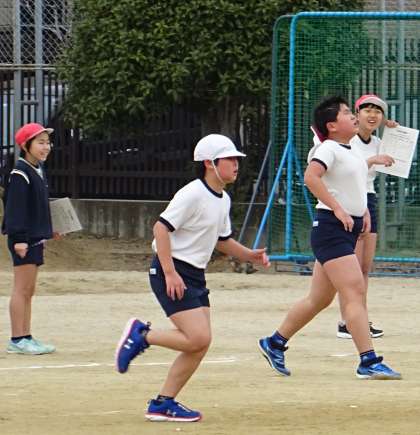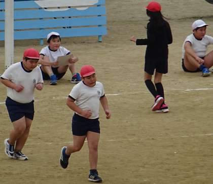 ペアの子は、記録をカウントしながら応援するだけでなく、走る姿勢やペース配分をアドバイスしています。