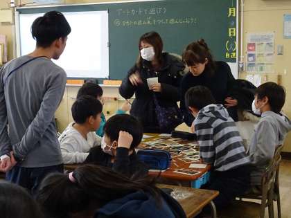 「アートカード」でカルタをするために、読み札を作る活動をしていました。