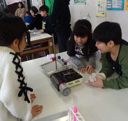 結果をみんなで確かめ、そこから考えられることを発表していました。