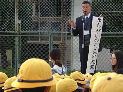 毎週月曜日にある児童朝会では、校長先生から子どもたちに向けた話があります。