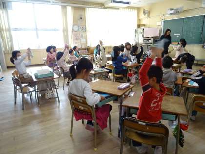 1年生の教室では、ハンカチ・ティッシュの点検が行われていました。