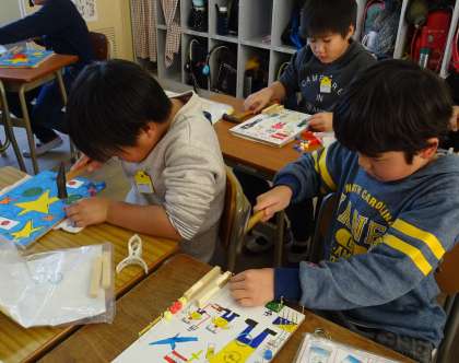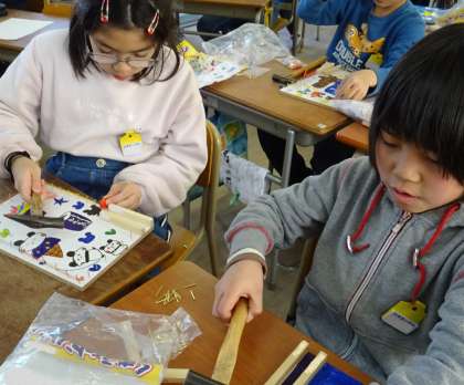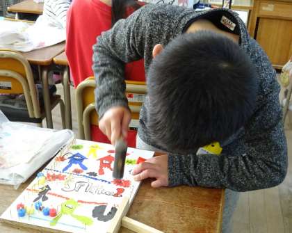 何本もの釘を打ち、コツをつかんだ子どもたち。