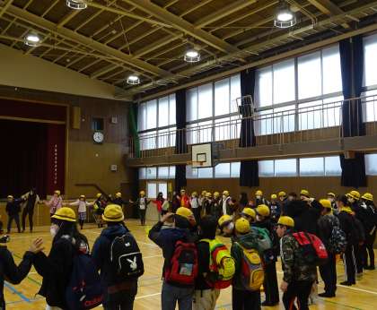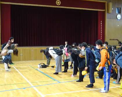 付き添ってくれた先生方に、しっかりと感謝の気持ちを伝え、最後は全員が大きな輪になり手をつないで、「さ・よ・う・な・ら」のあいさつをしました。
