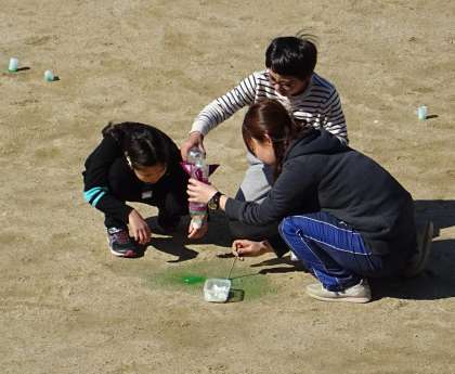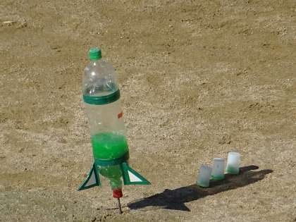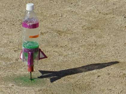 さあ、科学クラブの子どもたちが作ったミニロケットに、燃料がセットされました。