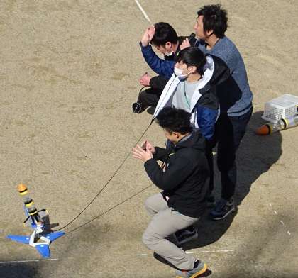 ロケットは、すさまじい勢いで飛び出し、見る見る小さくなっていきます。