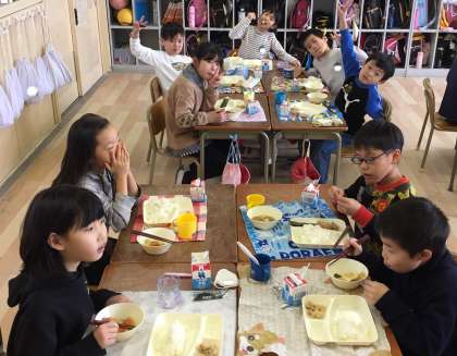 鶏肉のからあげは、生姜をおろした絞り汁、にんにく、塩、こしょうで下味を付け、片栗粉をまぶして油で揚げています。「また、から揚げ作ってね!」「から揚げ、おいしかったよ!次は、いつ出るの?」と、子どもたちに大人気でした。