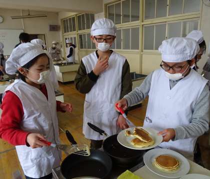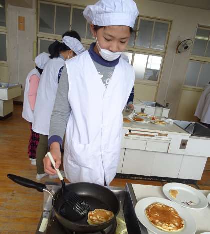 弱火でじっくり…美味しそうなパンケーキが焼けました。