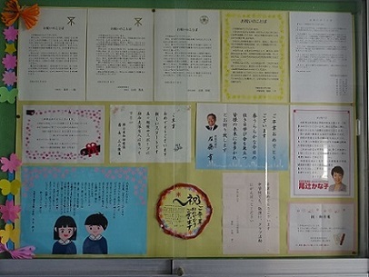 送っていただいた沢山のメッセージは、玄関に掲示しています。
