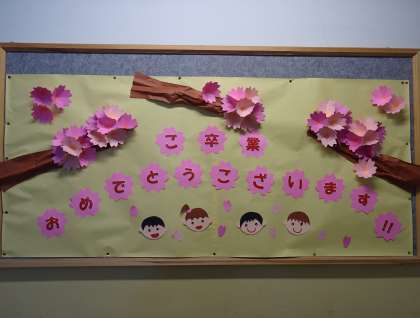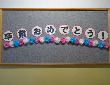 卒業を祝う飾り付けです。