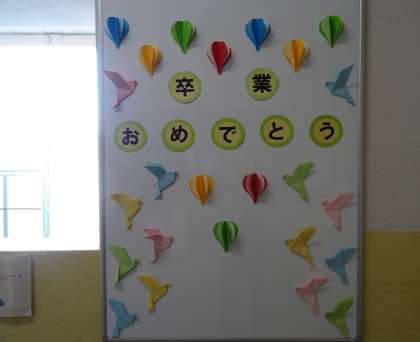 卒業を祝う掲示板。