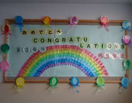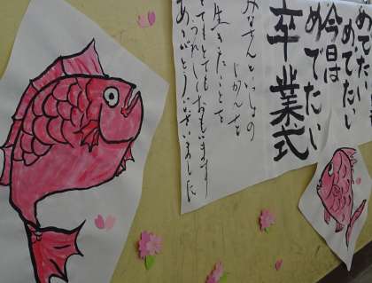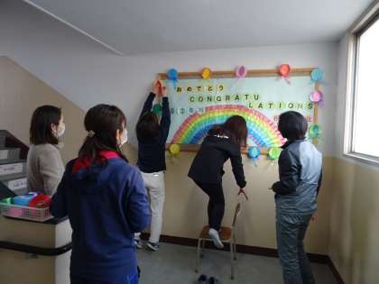 卒業を祝う掲示物。