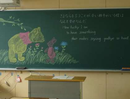 黒板には、担任からクラスの皆へのメッセージ。