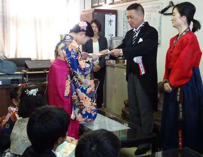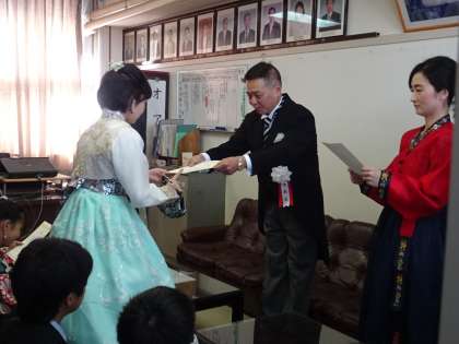 学校長とソンセンニムから、一人一人に修了証が渡され、言葉が送られました。