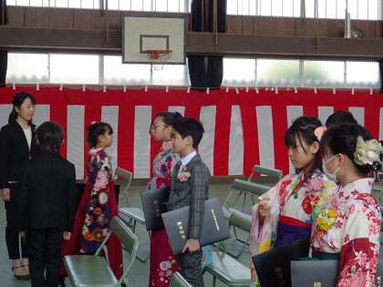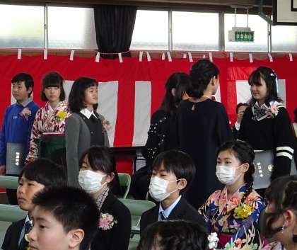 全教職員による演奏「♪威風堂々」に送られ、69名の卒業生が退場しました。