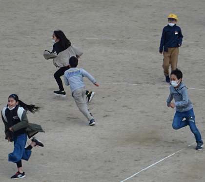 友だちと一緒に、運動場を所狭しと駆け回る子ども達の姿。