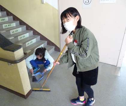 春休みを前に、「学校を美しくしよう」と清掃活動に取り組んでいる様子です。