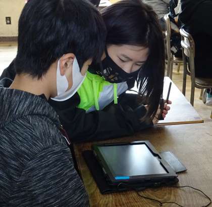 5年生の教室では、最後の時間までタブレット端末機を操作する姿がありました。