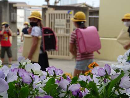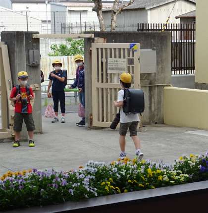 校門には、弟や妹を待つ、お兄ちゃんお姉ちゃんの姿が。