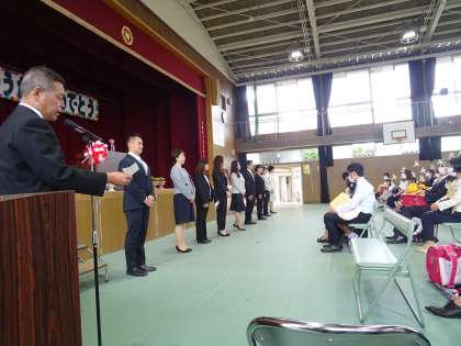 学校長あいさつに続き、学級担任と関係教職員が紹介されました。