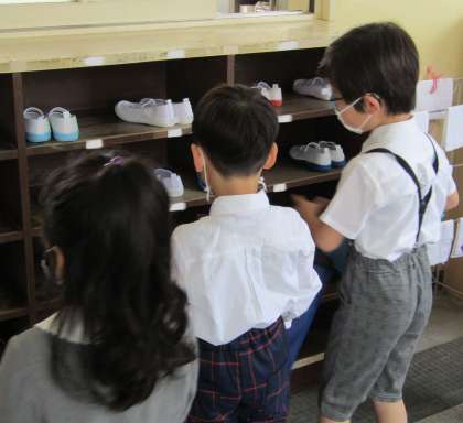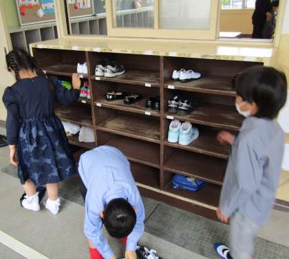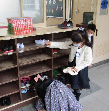 上手にくつをはき替え、下駄箱にきちんと並べて入れることができました。