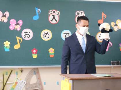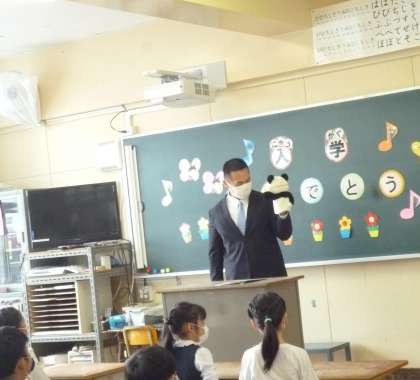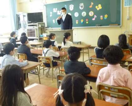 教室探検では、自分の座席やロッカー、下駄箱を確認しただけですが、1年生の子どもたちは、とても嬉しそうに座っていました。
