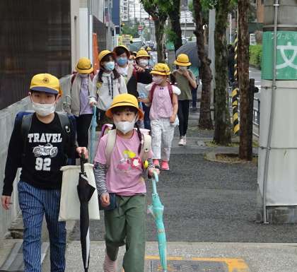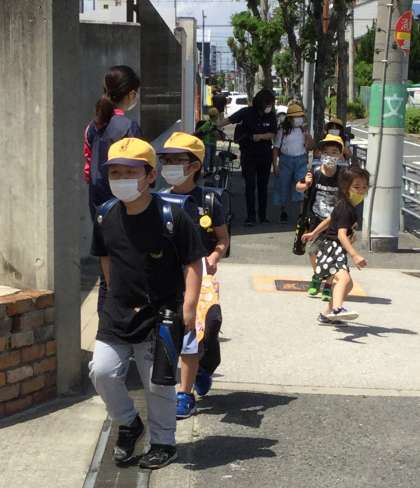 先日(5月17日)「入学オリエンテーション」で初登校した新1年生も、他の学年と同じように3グループ(A・B・C)の時間帯に分かれて登校しました。