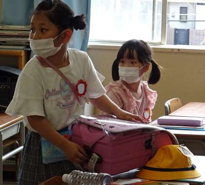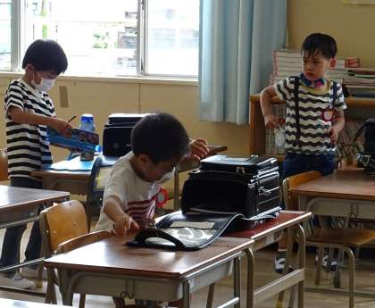 ランドセルの中の物を全部出します。