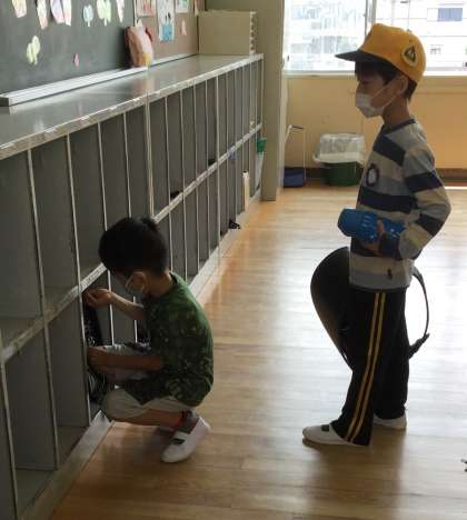 1年生が、朝の用意をしている様子です。