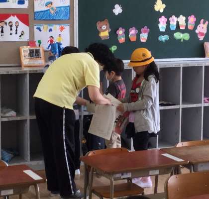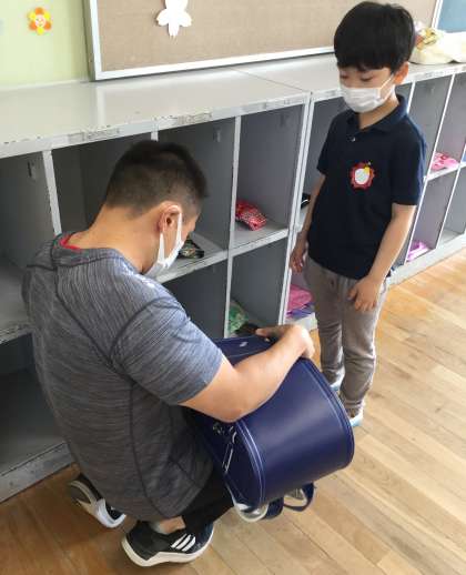 1年生にとって、初めての朝の用意。