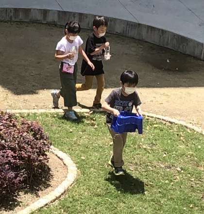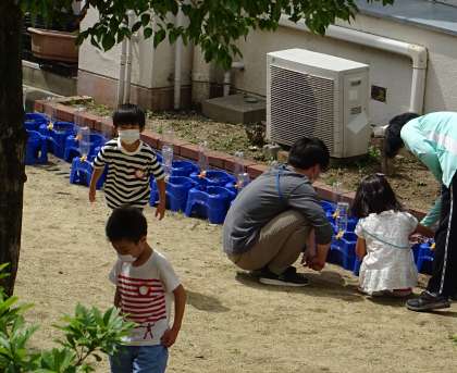 水やりが終わったら、自分の植木鉢にペットボトルを差し込みます。