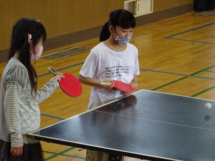 5年生が、卓球をしてました。