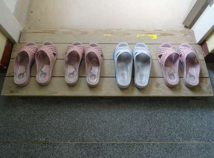 子どもたちが帰った後、トイレのスリッパがキレイにそろっていました。