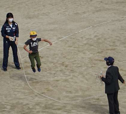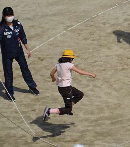 運動場で元気いっぱいに活動する子どもたちの様子です。