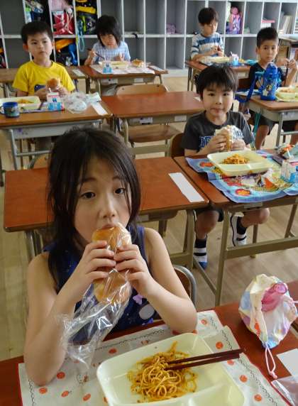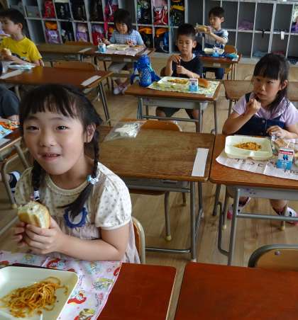 給食の感想を聞くと、みんな「おいしい」と言ってくれました。