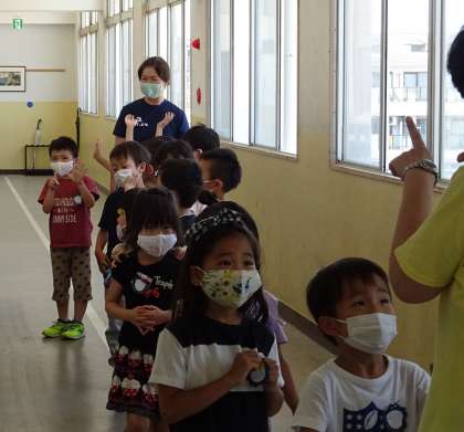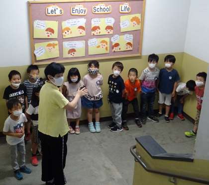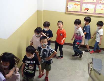 1年生が、学校探検をしている様子です。