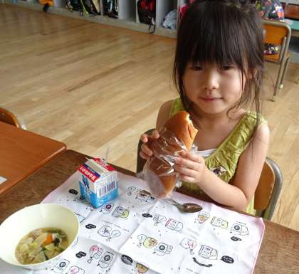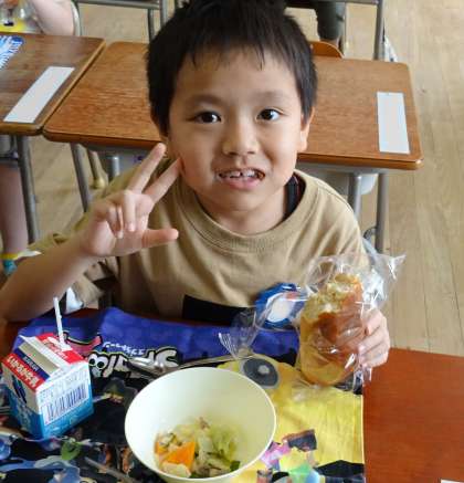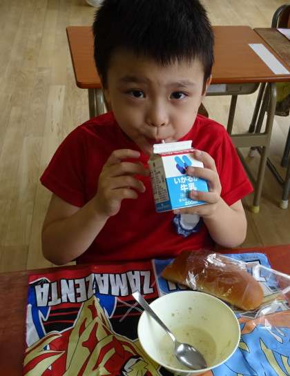 子どもたちは、うれし・はずかし・おいしそうに、給食を食べていました。