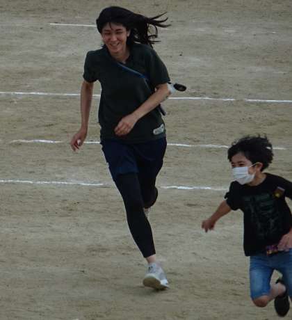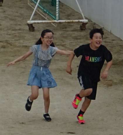 運動場を元気いっぱいに走り回る子どもたちの様子です。