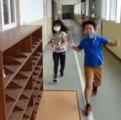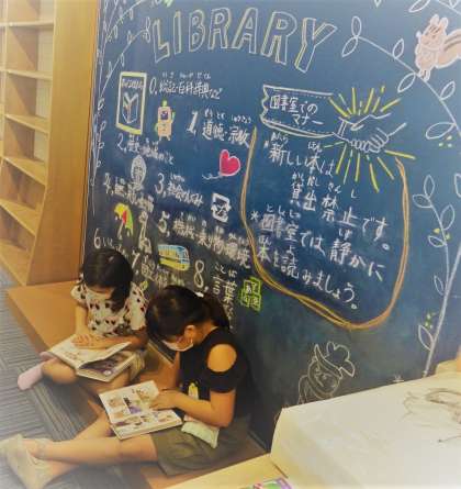 チャイムが鳴ると、急いで手を洗って図書室にやってくる子どもたち。
