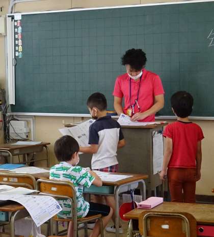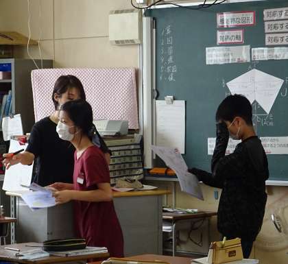 教室で授業を受けている様子です。