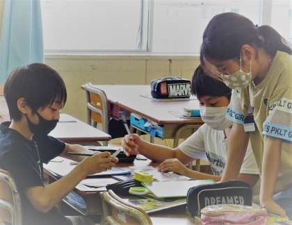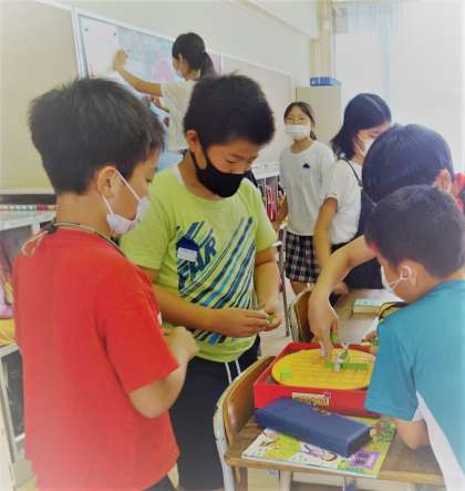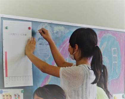 後ろの黒板には、先生の似顔絵が描かれていました。