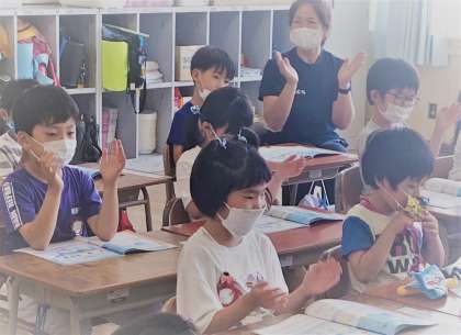1年生が、音楽の授業をしている様子です。
