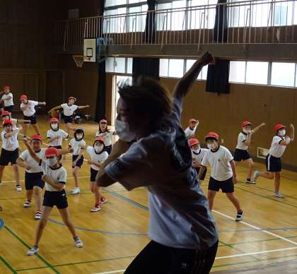4年生では、「踊育(だんいく)キャリア教育プログラム」として、ダンスのインストラクターを講師に迎え楽しく身体を動かすとともに、地域の伝統的な文化を学びながらダンスとの融合を図る活動に挑戦しています。
