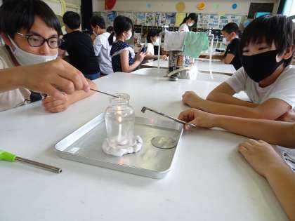 6年生は、理科の授業で「物が燃えるとき」の学習をしています。