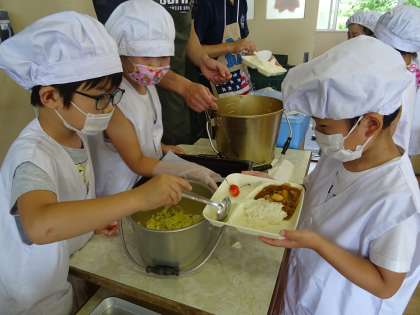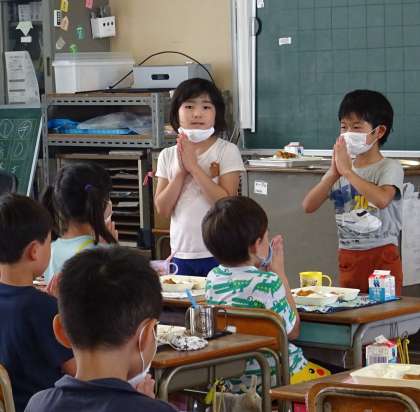 1年生も給食当番として、上手に配膳ができるようになりました。