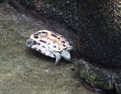 失敗して転んでも、すぐに立ち上がる元気なカメさん。