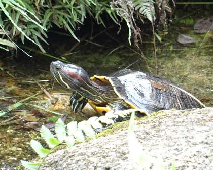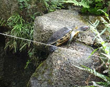 しばらくまわりを見渡しすと、池の外へと歩きはじめました。